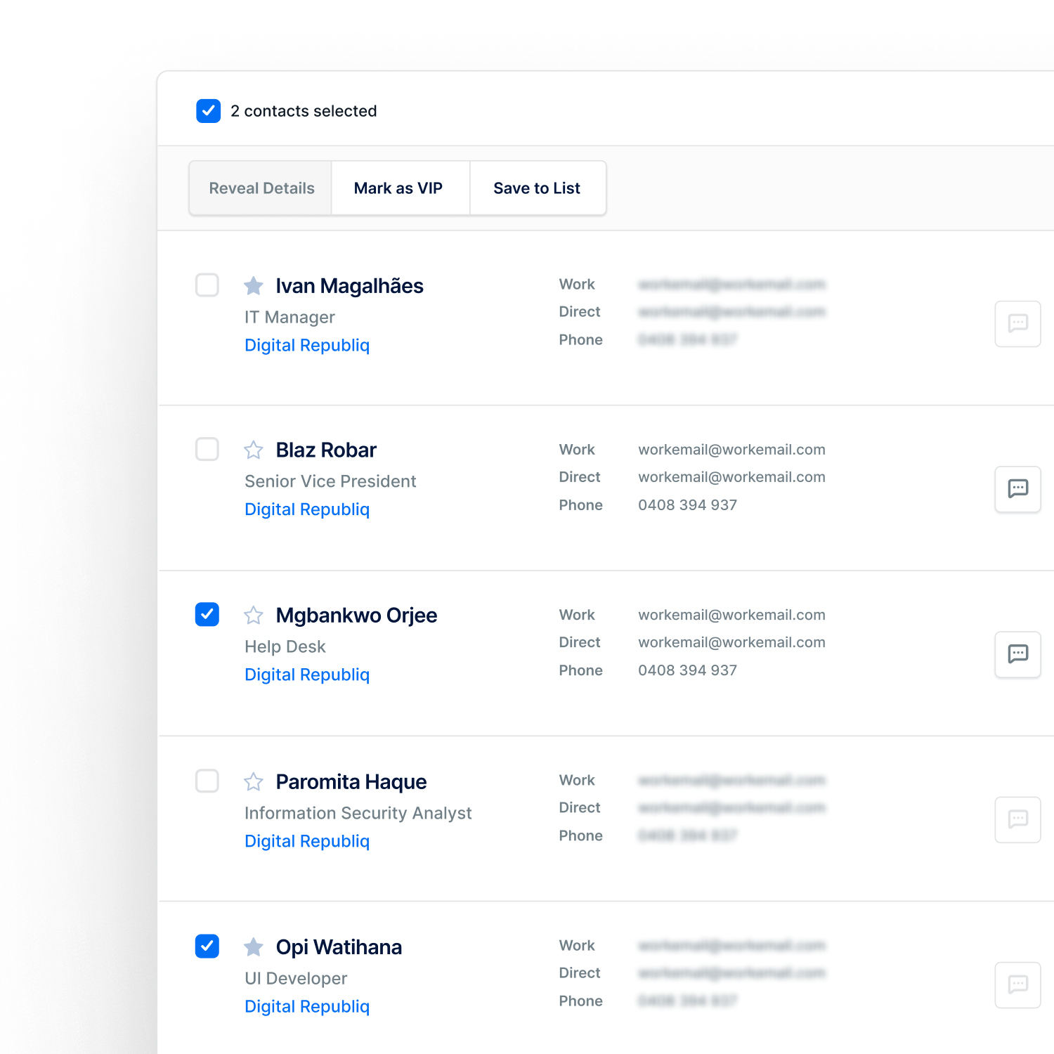 With hundreds of thousands of contacts available, all you have to do is click and choose, then watch our extension peel back the curtains so you can take a peek at all the juicy details!